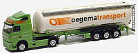 seitlich geöffneter Gardinenplanen-Auflieger, mit Ladegut bestückt |